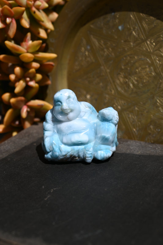 Meditative Larimar Buddha Carving