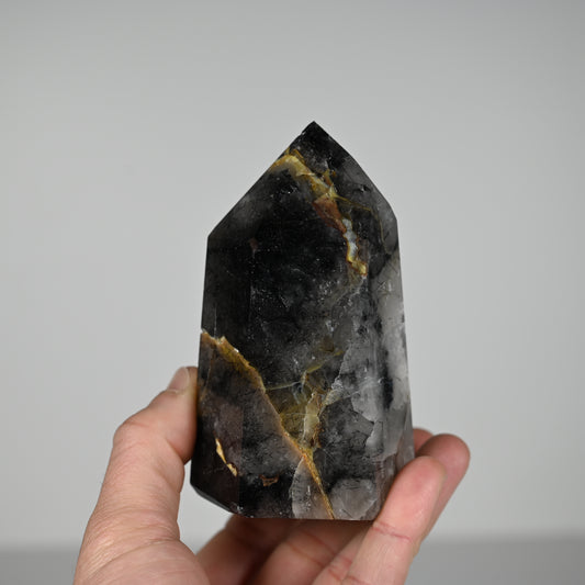 Spooky Mosaic Black Chalcedony Quartz Tower
